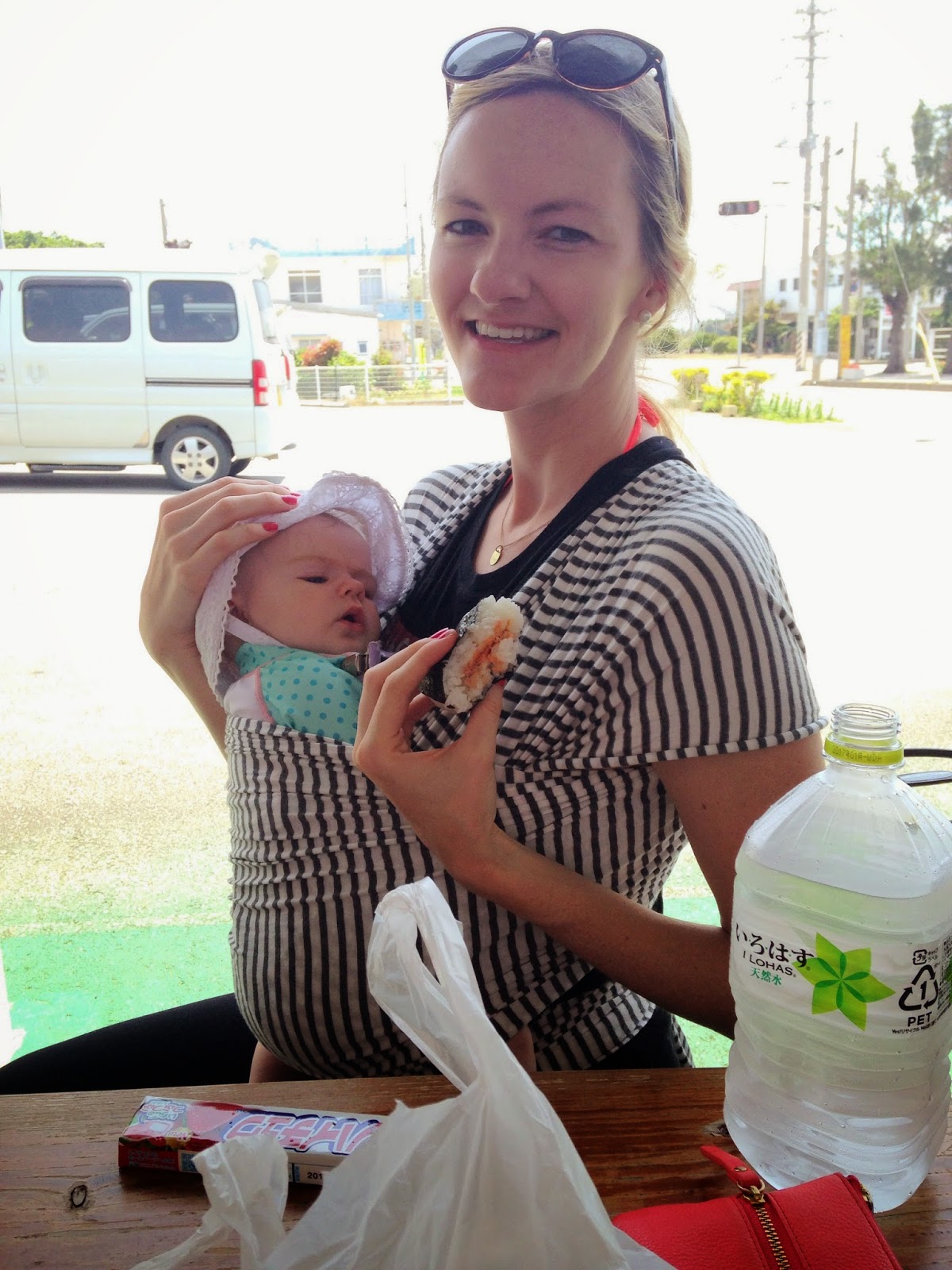 This past Friday I finallllly made my way to Ie Island. It's a really small island by Okinawa that is a 30 min ferry ride away. A group of friends decided to go over for the lily festival and although it turned out the lilies hadn't quite bloomed, I had a really fun day trip with them. The island was pretty adorable. It's mostly farmland with a random mountain in the middle and pretty coastlines. Since it's such a small island most people rent bikes and bike around, and so that is exactly what we did! I strapped lucy onto me and we rode around for probably 5 hours and she didn't complain about it one bit. The rest of my friends were staying the night, but I didn't want to do that with Lucy this time, so I only made it halfway around the island before it was time for us to go. But that means I'm just gonna have to go back! Oh and if you haven't been there, mapitokinawa has really great info about everything you need to know.